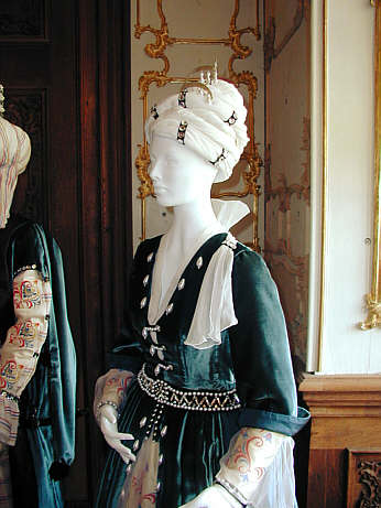 Nach den Vorlagen in den Kostümbildern der markgräflichen Sammlung wurden für die Vorstellungen im Schloss zwei Kostümpaare nachgeschneidert.