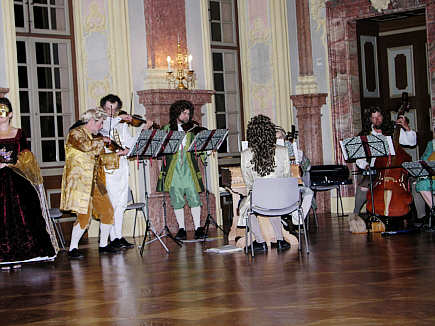 Das Ensemble L’Arpa Festante spielte dem hochwohlgeborenen Fürstenpaar und den edlen Damen und Herren Cavaliers auf.