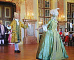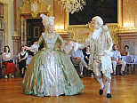 Mitglieder der Tanzgruppe Danzatori Palatini bei der Vorstellung höfischer Tänze als dem Spiegelbild der höfischen Rangordnung.