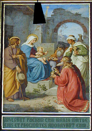 Schraudolph-Fresken im Langhaus: Anbetung der Heiligen Drei Könige