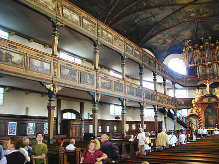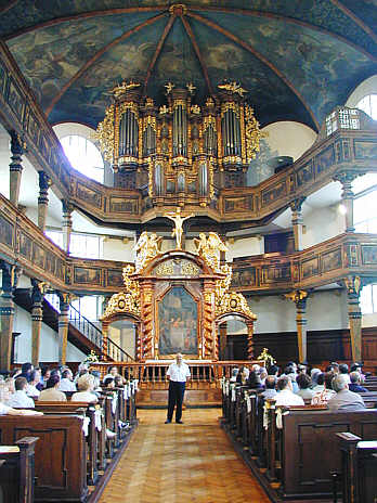 von umlaufenden Emporen den Predigtsaal umziehen. Die Decke