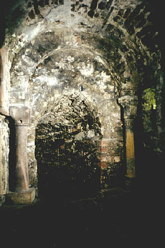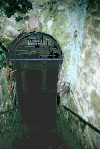 zu einem Vorraum und über einen tonnegewölbten Abgang (Bild unten)