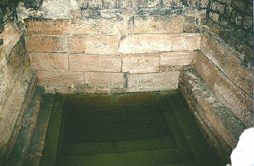 gemauerte Tauchbecken mit Grundwasser, in das das die Trittstufen