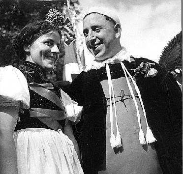Die Frau trägt den kleinen Hotzenwälder Schäpel, der Mann das Hemd mit Spitzenkragen und Troddeln