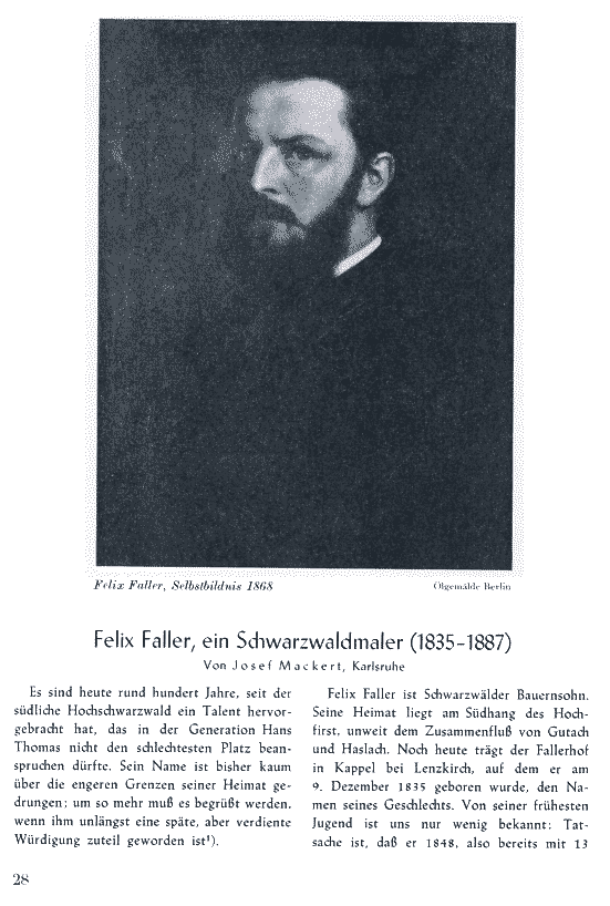 Josef Mackert: Felix Faller, ein Schwarzwaldmaler (1835 - 1887). Badische Heimat 34 (1954) S. 28 - 34