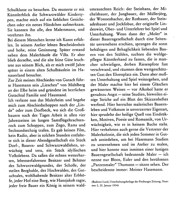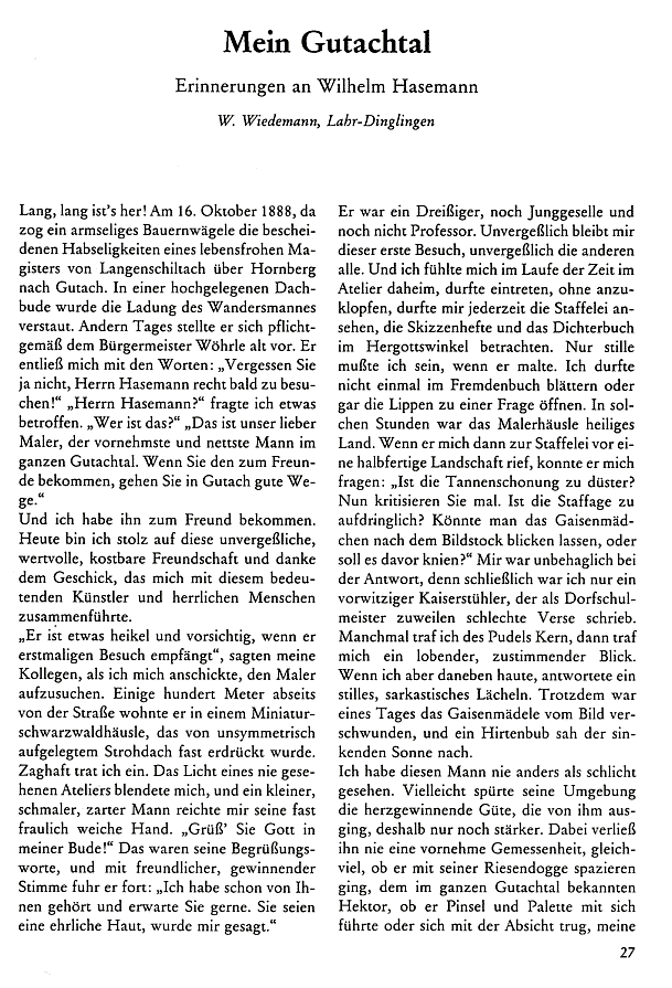 W. Wiedemann: Mein Gutachtal. Erinnerungen an Wilhelm Hasemann. Badische Heimat 69 (1989) S. 27-28