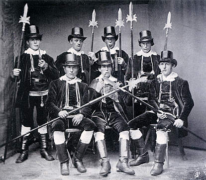 Vorstudien zum Gemälde "Der Zug der Goldenen Hochzeit": Hauensteiner Trachtenkapelle (oben) und Hauensteiner Bürgerwehr (unten).