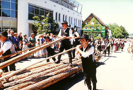 Rechts: Aussteuerwagen der Trachten- und Volkstanzgruppe Hausach-Einbach