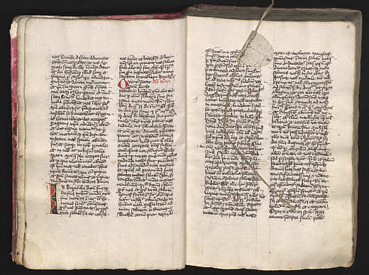 Ein Lese- und Kopierrädchen im aufgeschlagenen Codex. Württembergische Landesbibliothek Stuttgart, HB I 200