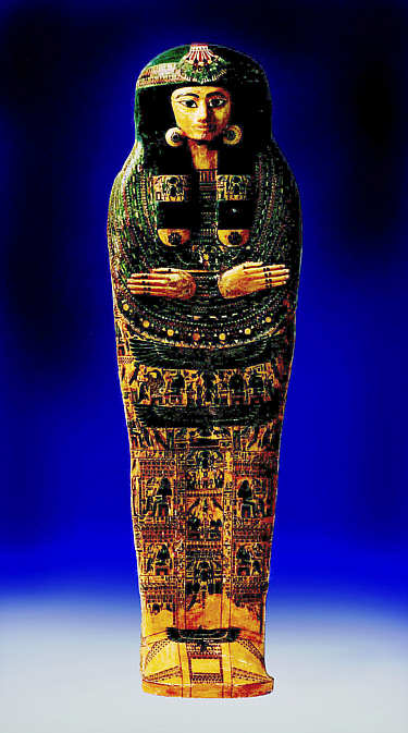 Sykomorenholz, mit Nilschlamm überzogen, stuckiert und bemalt