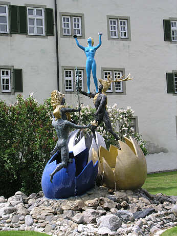 (1989) aus drei großen farbigen Eiern, aus denen Menschen