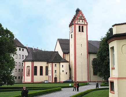 ehemalige Pfeilerbasilika von 1413, Turm 1481 verändert. im Osten langgestreckter spätgotischer Chor. Der Innenraum von Johann Caspar Bagnato 1748-53 barock umgebaut.
