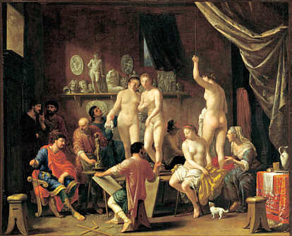 »Aktsaal mit fünf weiblichen Modellen«,