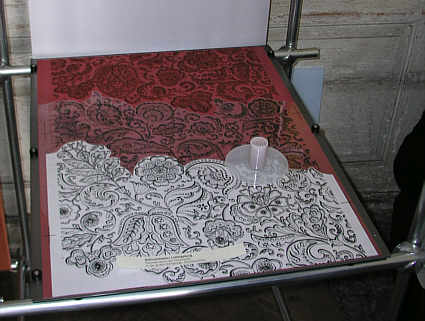 wie dieser Model-Leimdruck mit rotem Flockensamt. |
