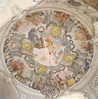 Spielpavillon, Rondell: Deckenfresko mit den Vierjahreszeiten, gemalt von Luca Antonio Colomba und Emanuel Wohlhaubter, 1716/17