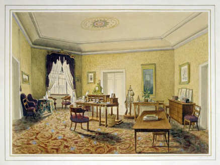 Schreibzimmer der Herzogin Henriette, Gouache, um 1850