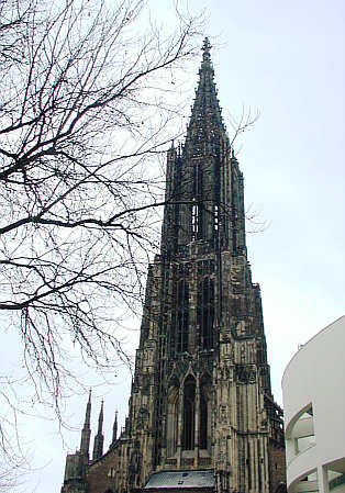 Planung desWestturms unter Ulrich von Ensingen (1392 - 1419) nach Freiburger Vorbild. Baufortschritt: Mit der Höhe von 161,53 m hat Ulm den höchsten Kirchturm der Welt |