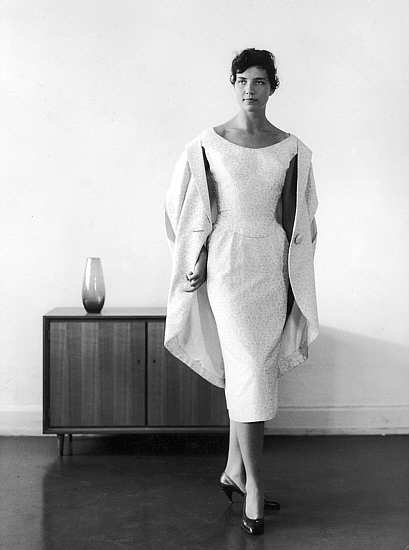 in einem Nachmittagskleid der Werkkunstschule Trier, 1957