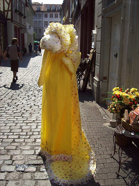 Biedermeierkleid in Gelb mit gepufften langen Ärmeln und kleiner Schleppe Rückansicht