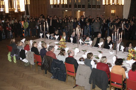 SWR Moderatoris Annette Krause durfte auch an der Tafel Platz nehmen.