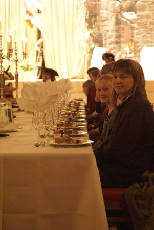 Teil des Hofstaats: Der Hofmeister (Mitte), die Weinmagd (links)