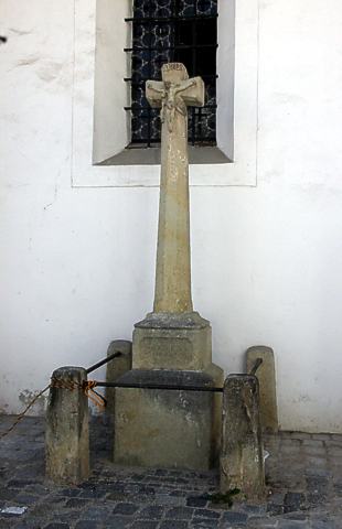 Schlachten In der Stadt zeugt ein gotisches Gedenkkreuz von