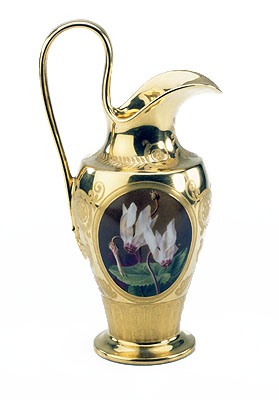 Erhalten haben sich nur die vergoldeten und bemalten Kännchen: Beliebte Blumen der damaligen Zeit wie Alpenveilchen, Rosen, Aurikeln (Primeln) und Trichterwinden sind darauf zu sehen. Heute sind die beiden Stücke im Besitz des Badischen Landesmuseums in Karlsruhe und derzeit als Leihgaben zusammen mit rund 100 weiteren Exponaten Teil der Ausstellung „1818/1918. Die Großherzöge von Baden in den Schlössern Rastatt und Favorite“.