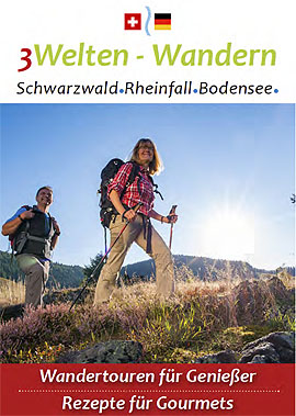 (rkom) Eine Auswahl von 15 Wandertouren durch die benachbarten und doch so unterschiedlichen Landschaften von Bodensee, Hochrhein und Schwarzwald findet man in der kostenlosen Broschüre «3Welten-Wandern». Mal sind es Rundtouren, mal Streckenwanderungen, und die meisten tragen sogar Auszeichnungen. Zu jeder Wanderung finden Sie in der Broschüre Einkehrtipps und sogar Rezepte, damit Sie die regionalen Spezialitäten zu Hause nachkochen können. Abwechslung in Landschaft, Kultur und Sprache Die ausgesuchten «3Welten-Wandertouren» im Schwarzwald, am Hochrhein und am Bodensee verbinden Erlebnis und Genuss – leckere Kochrezepte inklusive. Jede Tour ist mit Karte, Höhenprofil, Art der Ausschilderung und weiteren relevanten Informationen übersichtlich dargestellt.