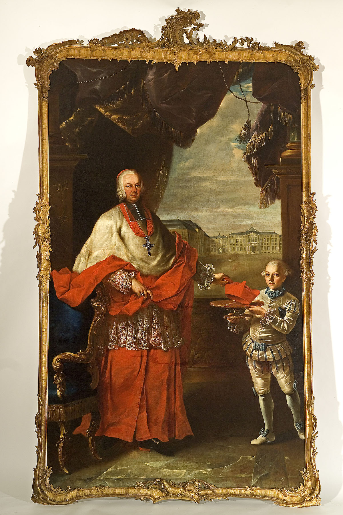 Fürstbischof Franz Christoph von Hutten (1706–1770) mit Page. Schloss Bruchsal. Foto: Arnim Weischer, LMZ/SSG