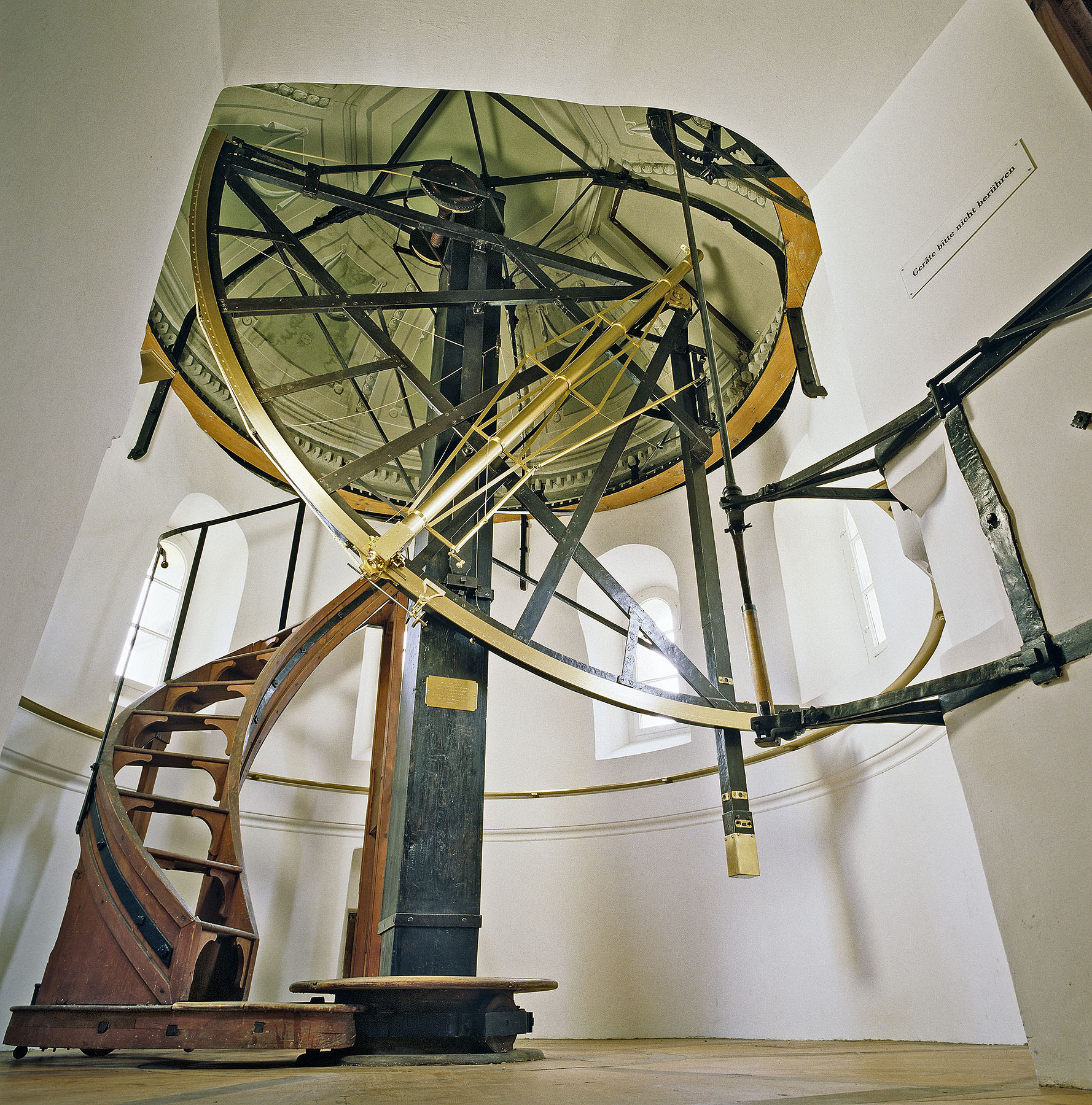 Im südlichen Eckturm des Konventsgebäudes von Kloster Ochsenhausen findet sich ein einmaliger Schatz: eine barocke Sternwarte. Die Forschungsstation mit drehbarer Kuppel wurde gegen Ende des 18. Jahrhunderts erbaut. Der hochmoderne Azimutalquadrant zählt mit knapp drei Metern Höhe zu den größten seiner Zeit. Das astronomische Messinstrument diente dazu, die Position von Gestirnen zu bestimmen. Hauptverantwortlich für die Sternwarte war der Benediktinermönch Basilius Perger. Den Bau begleitete er mit großer Leidenschaft und Ausdauer – und legte sogar selbst Hand an.