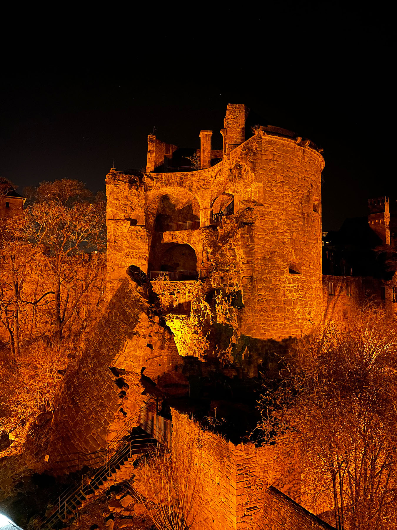 Künftig in der Nacht dunkel: Der Gesprengte Turm von Schloss Heidelberg. Foto: kulturer.be