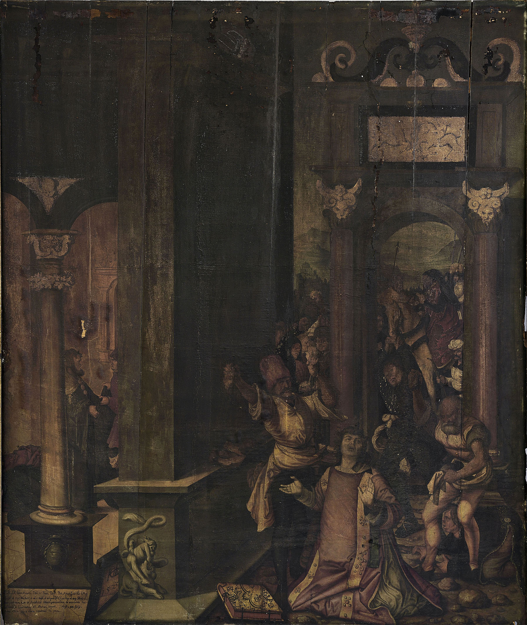 Die Steinigung des heiligen Stephanus, 1522, mit Monogramm signiert und datiert, Öl auf marouflierter Leinwand auf Holz, 175 x 148 cm, Straßburg, Museum OEuvre Notre-Dame, Foto: Mathieu Bertola