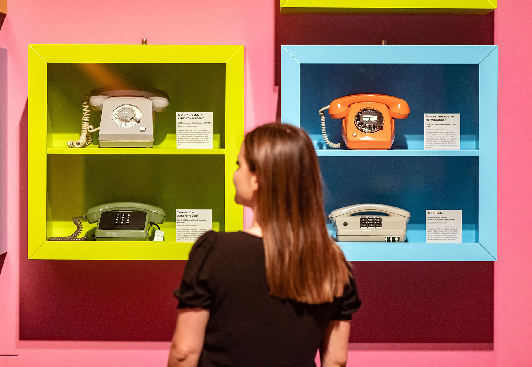 Besucherinnen und Besucher schwelgen in vergangenen Musik- und Kinowelten: Sie sehen Schallplatten-Cover, Plakate von Blockbuster-Filmen und erinnern sich an Konzerterlebnisse. Und an große Reiseabenteuer: Eine ganze Generation erobert mit Interrail und Rucksack die Welt. In der grafischen Gestaltung der Erlebnisausstellung zieht sich das Quadrat thematisch durch – typisch für den bunten Zauberwürfel oder die frühe Pixelgrafik von Pac-Man, Mario Bros und Tetris. Es ist die Geburtsstunde der elektronischen Unterhaltung. Das Telefonieren ist zwar noch kabelgebunden, gleichzeitig kommen erste Computer und Gamingkonsolen auf.