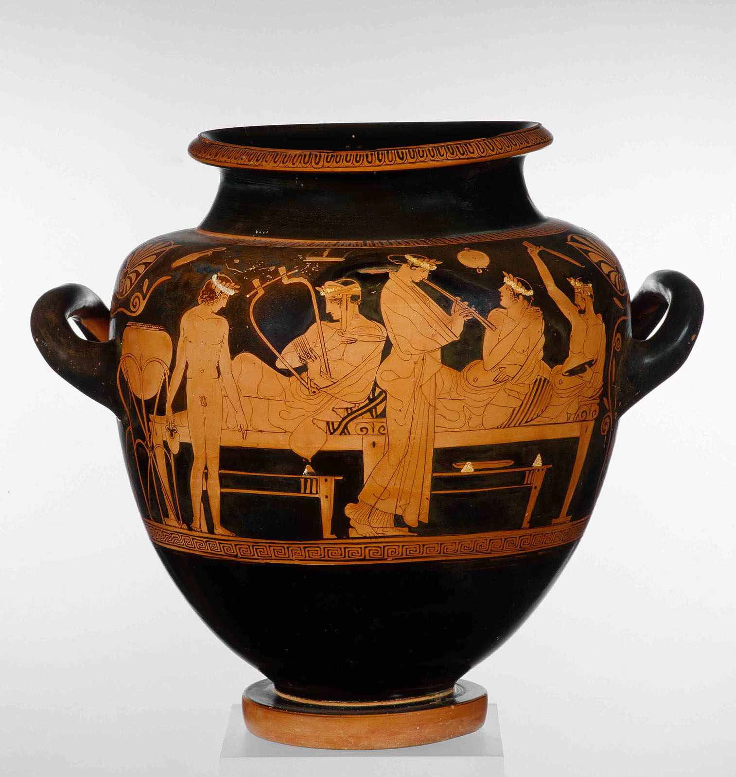 Das Idealbild eines gesitteten Symposions. Attisch rotfiguriges Weinmischgefäß, Ton, um 430 v. Chr. Staatliche Antikensammlungen München, Inv. SH 2410. © Staatliche Antikensammlungen und Glyptothek München, Renate Kühling