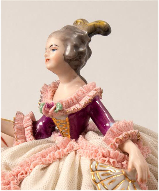 Im Formenspektrum der Figuren des Wesselsporzellan spielten Sujets in Anlehnung an Barock und Rokkoko eine wichtige Rolle. Eine weitere Besonderheit, die sich auch als Zierelement in der höfischen Kleidung der Frankenthaler Papageienfreundin wiederfindet, ist die Technik der filigranen Porzellanspitze. Hierbei wird das eigentliche Spitzenmaterial mit einer hauchdünnen Parzellanflüssigkeit überzogen, sodass sie beim anschließenden Brennvorgang vergeht und nur die Struktur des gebrannten Überzugs bestehen bleibt.