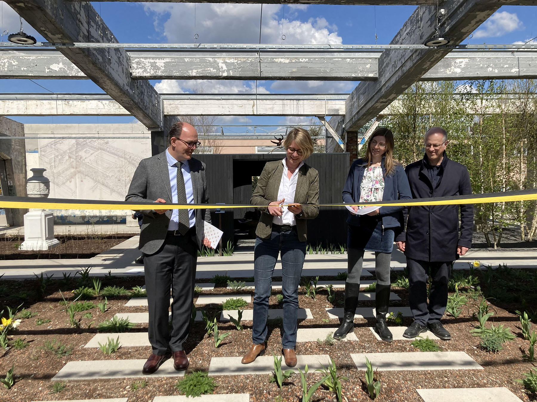 (ssg) Mit einer einzigartigen Schaufläche sind die Staatlichen Schlösser und Gärten Baden-Württemberg auf der Bundesgartenschau in Mannheim vertreten: Ausgewählte historische Elemente treffen auf aktuelle Naturwahrnehmungen – und bieten so ein erstaunliches Zusammenspiel von großer Gartenkunst und zeitgemäßem Recycling von Flächen und Materialien. Am 14. April eröffnete die Geschäftsführerin Patricia Alberth die Präsentationsfläche in der ehemaligen U-Halle.