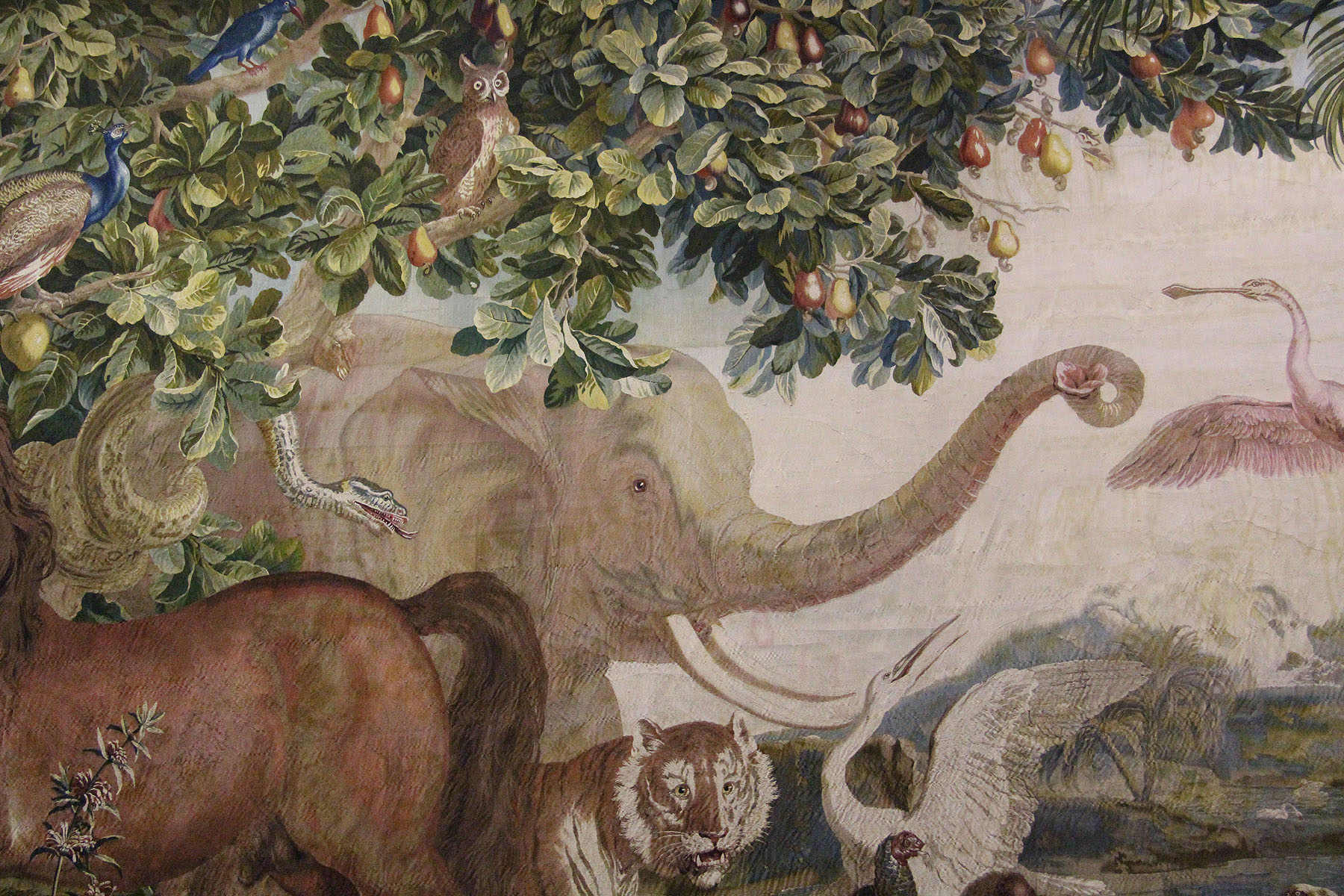 Schloss Mannheim, Tapisserie der Neu-Indien-Serie mit Elefant und Tiger.