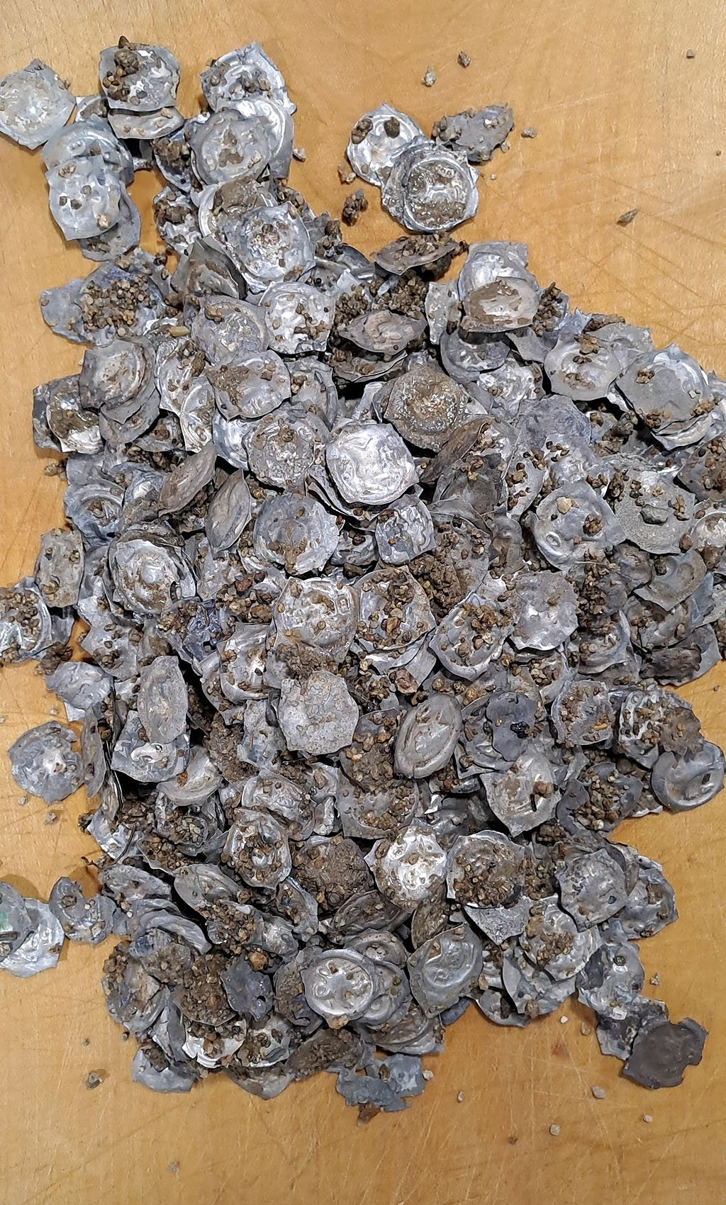 (rpfr) Der Aufmerksamkeit des Glottertäler Bürgers Claus Völker ist die Entdeckung eines der umfangreichsten mittelalterlichen Münzschätze der letzten Jahrzehnte zu verdanken. Auf Bitten eines Mitarbeiters des Landesamtes für Denkmalpflege (LAD) im Regierungspräsidium Stuttgart begleitete er Anfang Mai 2024 die Verlegung einer Leitung nahe des Schwimmbads. Dabei fielen ihm auf dem Aushub „kleine Metallplättchen“ auf. Eine Begehung des Leitungsgrabens erbrachte weitere Funde, die er sofort dem LAD meldete. Zusammen mit einem Vertreter der Behörde wurde die Fundstelle noch am selben Tag begangen und die Funde (zirka 1000 Münzen) geborgen. Parallel dazu waren drei durch das LAD zertifizierte Sondengänger beauftragt worden, den Abraum abzusuchen. Trotz zum Teil widrigen Verhältnissen – der Regen verwandelte den Abraum in knietiefen Schlamm – haben sich die Beauftragten nicht beirren lassen. Die Hartnäckigkeit wurde mit dem Fund von etwa 600 weiteren Münzen belohnt.