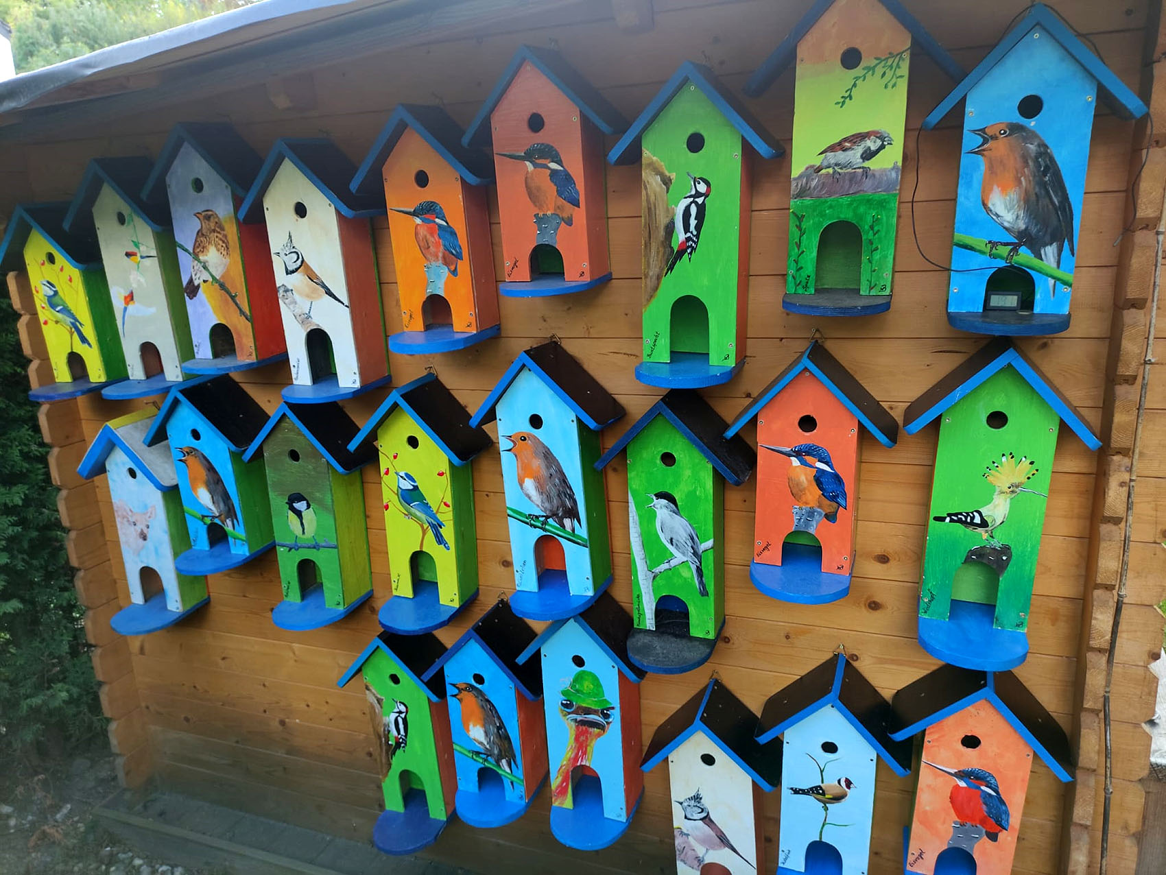 Nistkästen und Futterhäuschen des Künstlers Wigbert Bohn. Foto: Jutta Zuncker /ssg