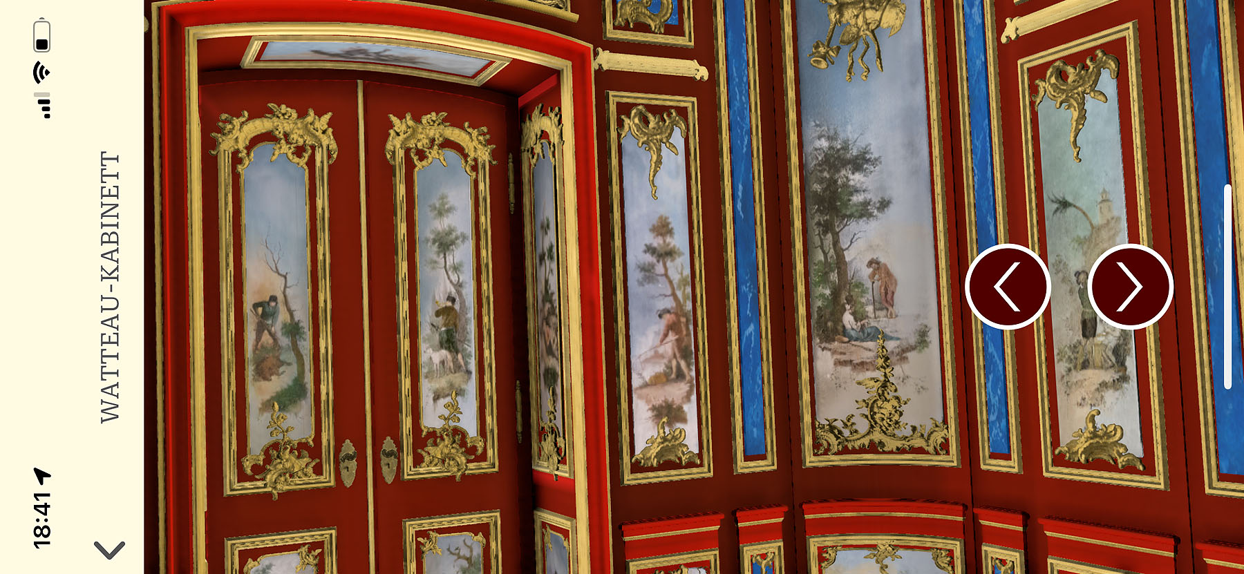 „Mit der App wollen wir nicht nur den ursprünglichen Zustand des reich ausgestatteten Watteau-Kabinetts rekonstruieren, sondern unseren Gästen ein wirklich immersives Erlebnis bieten. Sie stehen quasi im Kabinett und können es mit Augen und Ohren erfahren,“ erklärt Dr. Schwartz. „Die App zeigt auf eindrucksvolle Weise, wie der Raum entstand, wie e