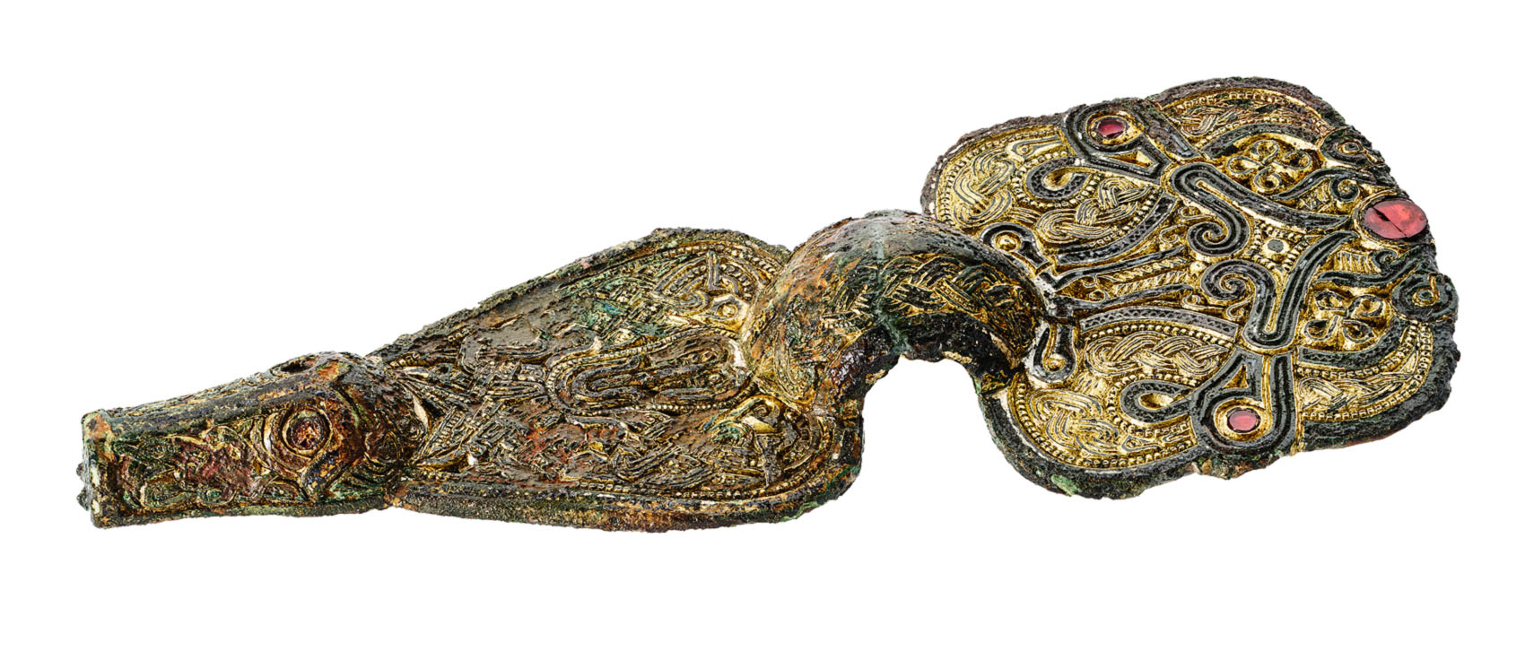 Bügelfibel mit Runeninschrift aus Neudingen, frühes 7. Jahrhundert, Leihgabe Archäologisches Landesmuseum Baden-Württemberg, Foto: Axel Killian