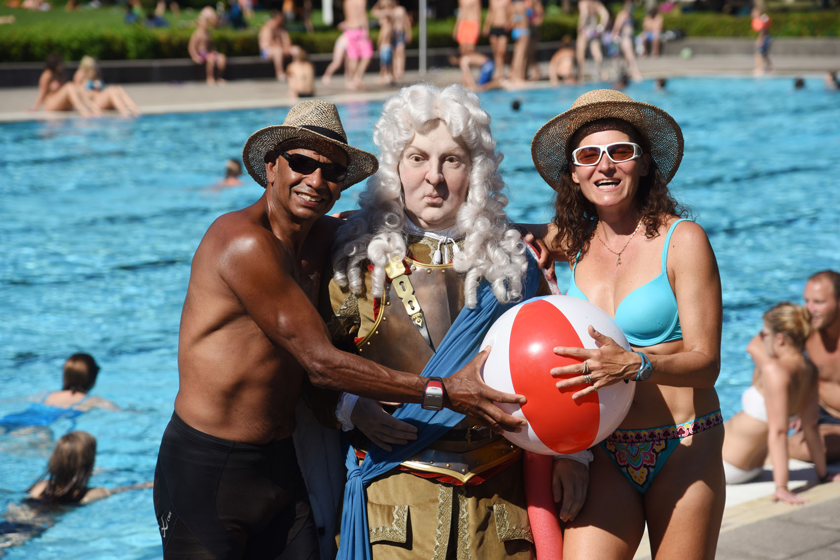 Zum Stadtgeburtstag 2015 besuchte Karl Wilhelm zahlreiche Institutionen in Karlsruhe u.a. das Freibad Rüppurr © Artis - Uli Deck