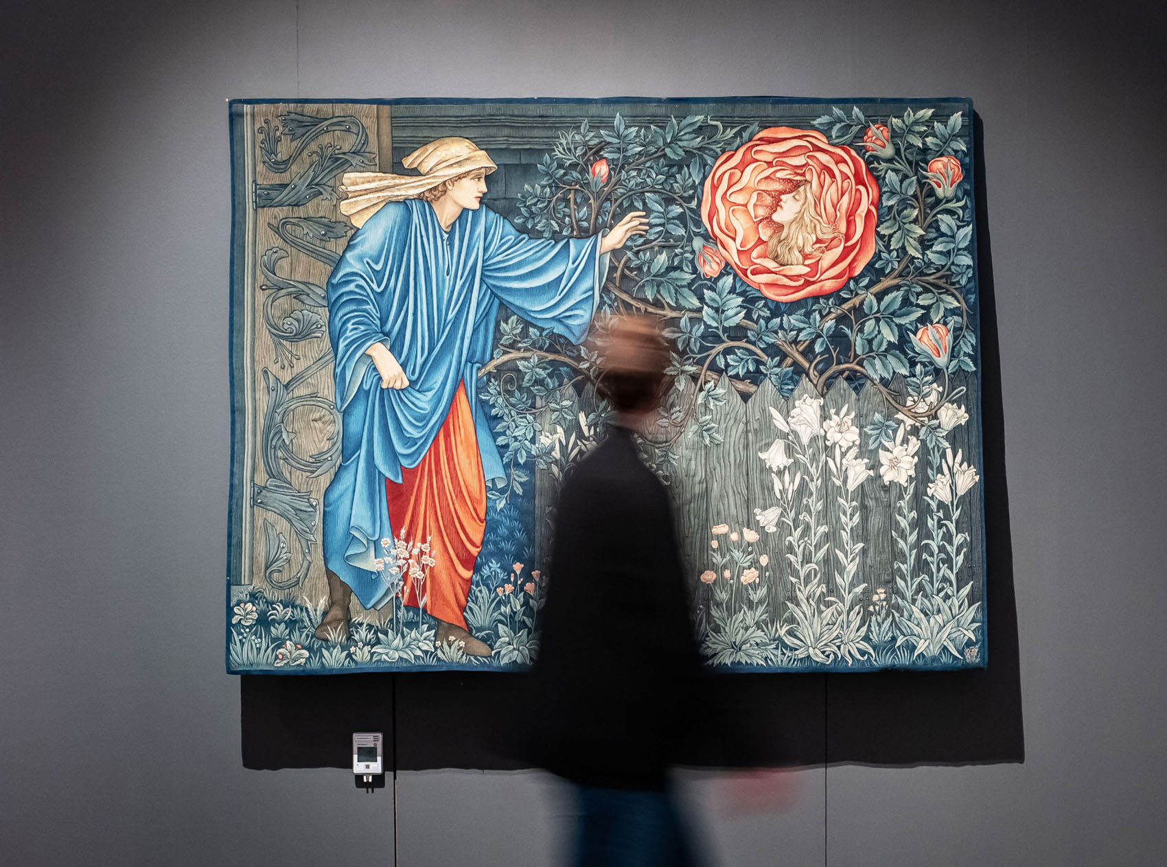 Sir Edward Burne-Jones und William Morris Wirkteppich „Der Pilger im Garten oder das Herz der Rose“ Entwurf: London, vor 1896, Ausführung: Merton Abbey, London, 1901, Badisches Landesmuseum © Badisches Landesmuseum