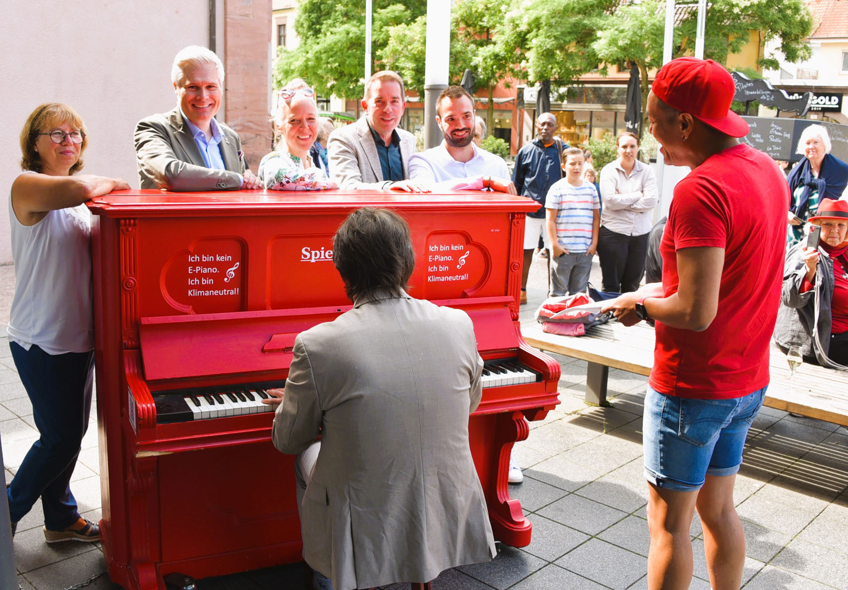 (tisw) Mit einem kleinen musikalischen Auftakt und viel positiver Resonanz wurde heute das neue öffentliche Klavier der Stadt Schwetzingen feierlich eingeweiht. Unter dem Motto „Tasten frei!“ lädt das liebevoll restaurierte knallrote Instrument ab sofort auf den Kleinen Planken vor dem Lutherhaus dazu ein, spontan gespielt und erlebt zu werden – immer an den Markttagen, mittwochs und samstags, von morgens bis in die frühen Abendstunden.