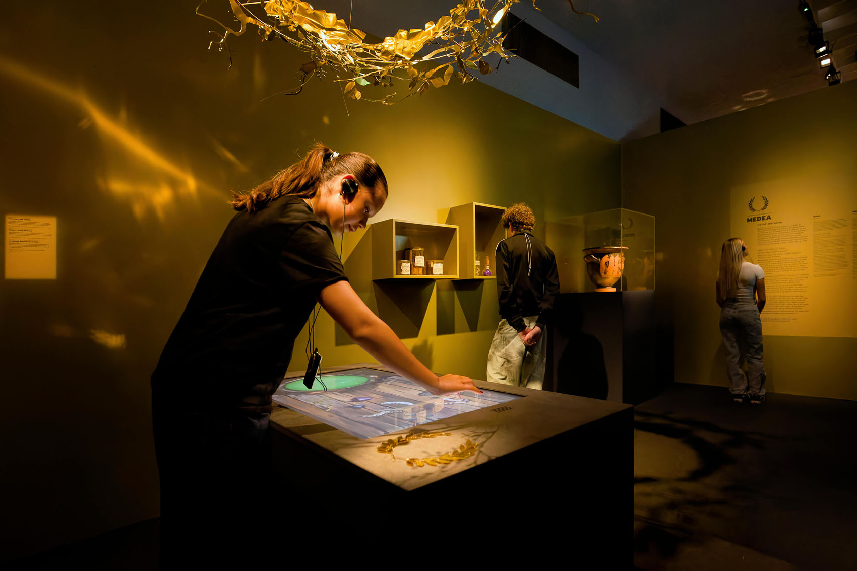 Auf insgesamt sieben Missionen in Form von analogen und digitalen Spielen begeben sich die Besucher*innen auf die Spuren ihrer antiken Vorgänger*innen, bestreiten die gleichen Abenteuer, treten den gleichen Ungeheuern entgegen und stehen vor den gleichen Rätseln. Die Spiele erfordern unterschiedliche Fähigkeiten, die unsere Besucher*innen in sich entdecken, während sie Punkte sammeln und sich ihren persönlichen Heldenstatus erspielen. Auf ihrem Weg treffen sie auf die furchteinflössende Medusa am Rande der Welt, bezwingen den dreiköpfigen Kerberos in der Unterwelt und stellen sich dem menschenfressenden Minotauros in seinem Labyrinth auf Kreta. Ihr Ziel ist das Heiligtum von Delphi. Im Tempel des Apollon, dem Gott der Weissagung, erfolgt die Punkteauswertung und die Besucher*innen erhalten von der Pythia, dem Sprachrohr Apollons, einen personalisierten Orakelspruch basierend auf ihren jeweils herausragenden Fähigkeiten, die sich beim Erfüllen der Missionen herauskristallisiert haben.