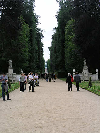 Achse mit Blick zum Neuen Palais, rechts und links zwei klassizistische Brunnenanlagen.