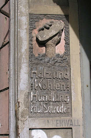 Giebelhaus des 19. Jahrhunderts Detail: Firmenlogo im Türgewände