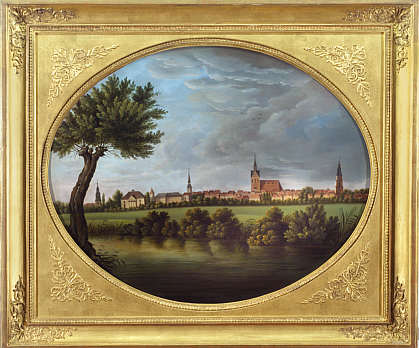 Hannover von Süden, nach Johann Heinrich Ramberg, ca. 1830, Lackmalerei