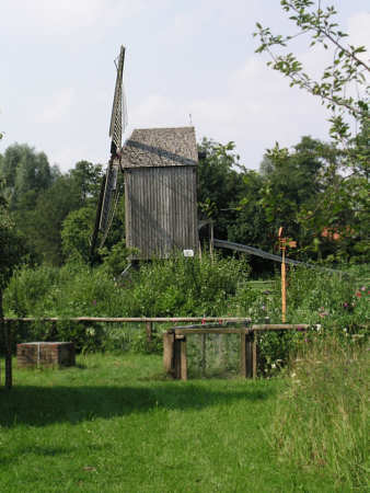 Bei der Bockwindmühle wird der gesamte Mühlenaufbau mit Hilfe des nach hinten ausragenden Balkens (Stert) in den Wind gedreht. Dafür sind Seil- oder Kettenzüge und Zugvieh notwendig.