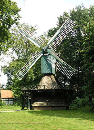 holländischen Kappen- oder Galeriewindmühle dar. Bei